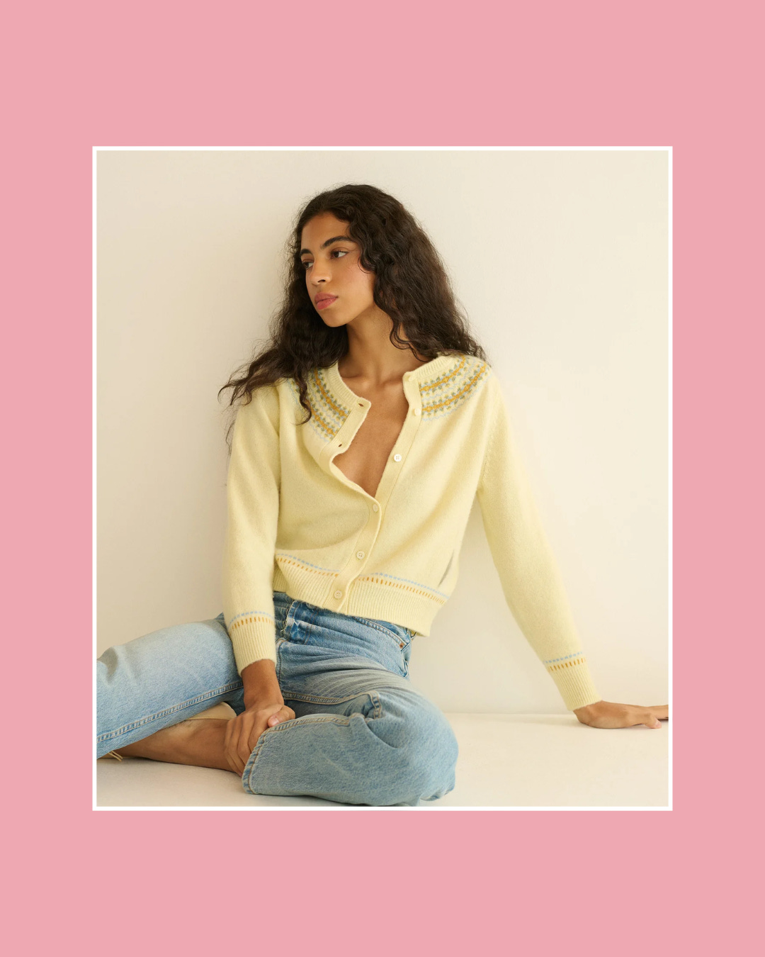 I stumbled across this yummy cardigan in person last week, and it’s even more gorgeous up close. The classic Fair Isle pattern and bracelet-length sleeves give off a sweet vintage charm.