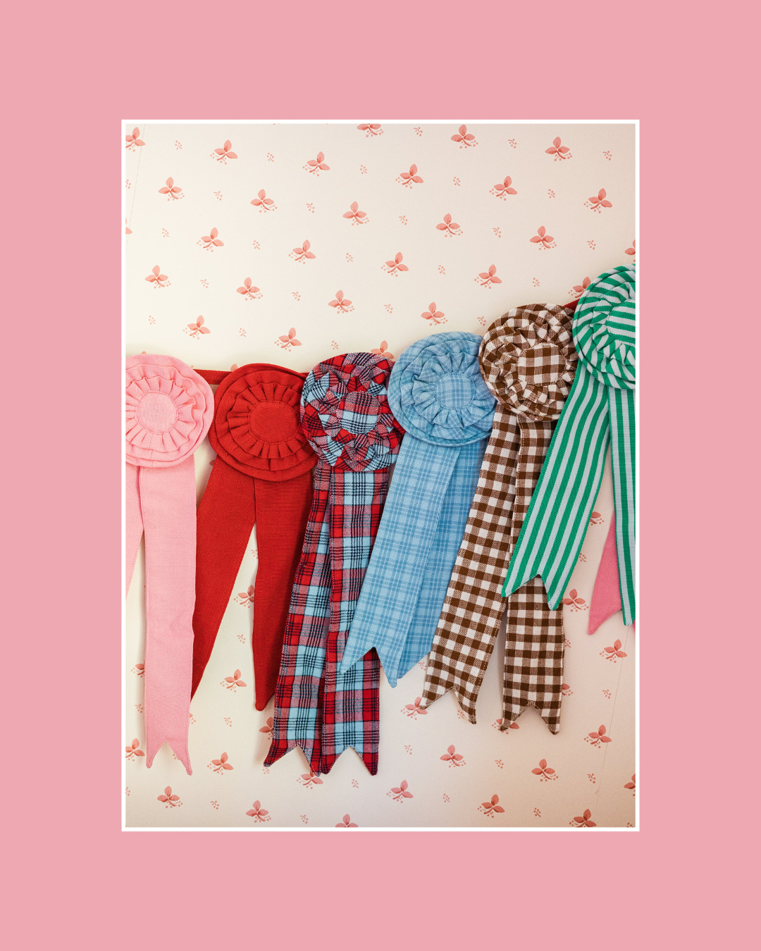 These show ribbons, inspired by mid-century pony rosettes, would look darling strung across a children’s room. I have a feeling the pink one, in particular, would absolutely delight my seven-year-old this Valentine’s Day.