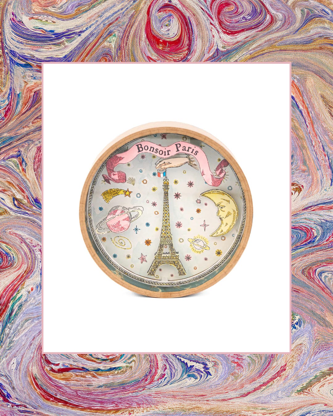 Consider this your passport to Paris, no plane ticket required. This hand-painted Parisian night scene reminds me of my fourth-grade social studies diorama, only much, much better.