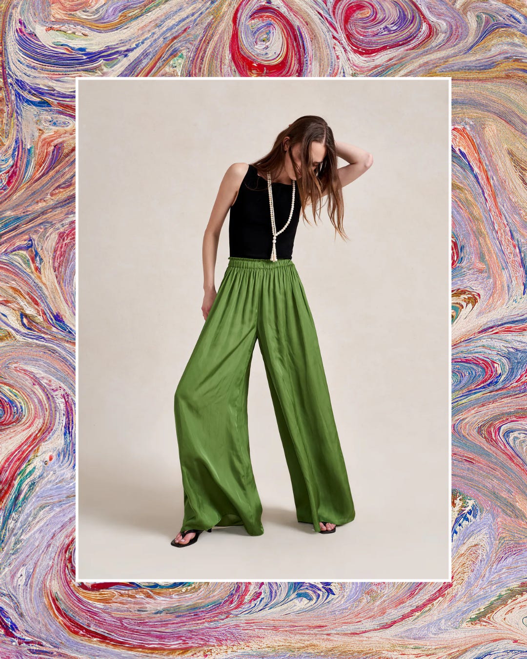 These gorgeous green satin pants just landed online and I’m crazy about both the cut and color. The wide leg is beyond flattering and the green truly seasonless, but also perfect for spring!